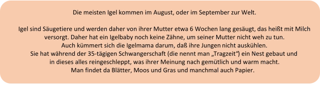Winter überstehen zu können. Ein erwachsener Igel wiegt knapp das doppelte zur gleichen Zeit.